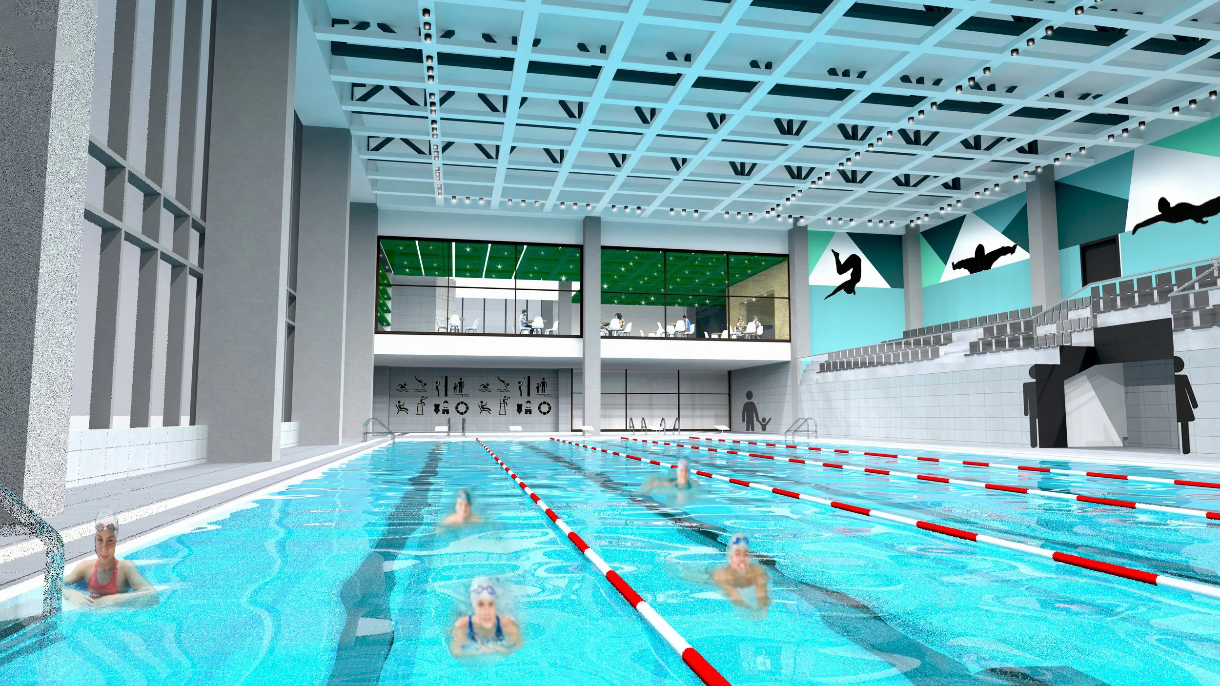 Yüzme Havuzu: Kullanıcı dostu ve hijyenik bir ortam yaratmak için renk ve malzeme seçimlerinde yüzme temasına uygun çözümler tercih edilmiştir.